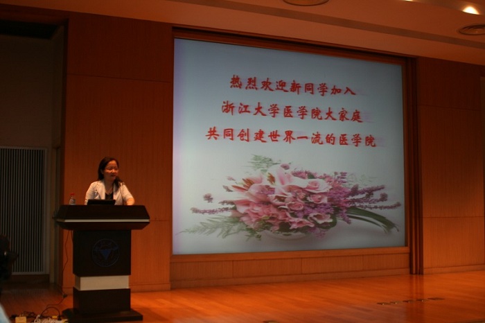 在简短的欢迎辞之后,巴院士给医学生带来了第一堂课,主题是“My opinion medical education from nowadays and future medicine”。巴院士语言智慧而不失风趣,报告不但指出了我国当今医学面临的主要问题,明确了健康的重要性,阐述了医学的本质和任务,还提出了对高质量医学教育的要求。他希望医学生在今后离开学校时,能具有“人文心、科学脑、世界观、灵巧手。”报告体现了巴院士基于全社会、全人类的宽阔视野和面向未来的长远目光,这样的院士风采更是感染了在场的每一位医学生。整场报告会,掌声不断,高潮迭起,很多新生深受感动和鼓舞。 之后的问答环节也异常热烈,新生们提问非常踊跃。面对同学们的提问,巴院士给予了详细的解答。当被问及当今严峻的医患关系,他说:“医生与患者是一个战壕中的战友,病痛才是我们的共同敌人。”形象而生动地比喻,寓意深刻,给所有在场的老师和学生留下了深深的印象。 接着,医学院副院长方向明教授代表学院欢迎新同学的到来,并向新生们作了题为“仁心仁术、求是求新”的始业教育报告。方院长向同学们简述了浙大医学院的历史,并对学院的组织结构、知名教授和学科带头人以及一些重点实验室作了简单的介绍。她还为新生推荐医学方面的著作和“好医生”,并坦言希望能多与新生交流,从而“让我们年轻,让你们长大”。方院长的讲座亲切生动又意味深长,娓娓道来医学院“培养和造就医疗实践、生物医学研究及公共卫生管理的学者和未来领导者,建设一所研究型医学院”的目标。