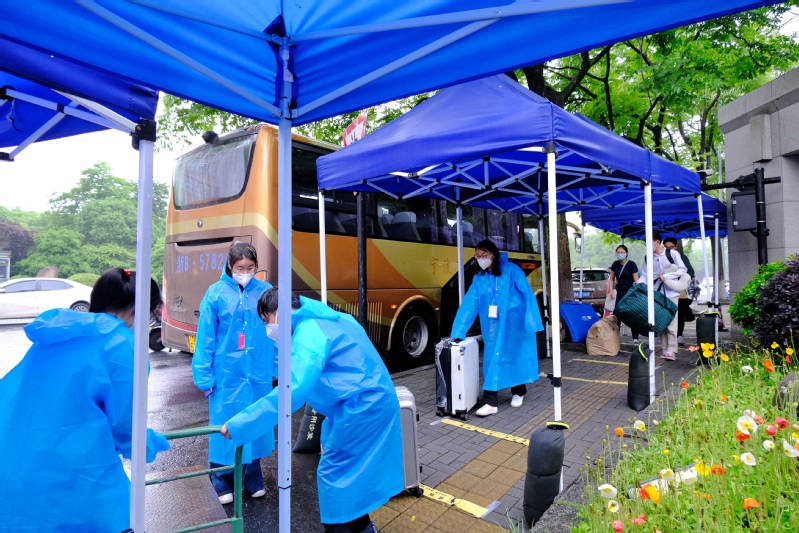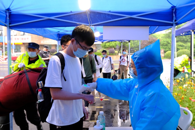 华家池畔,医学院60余名党员志愿者日夜接力,迎接2753名医学生顺利返校