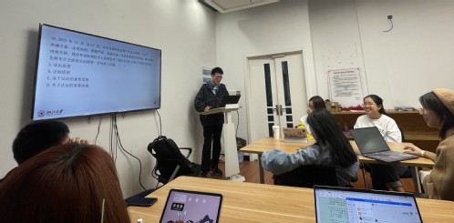 最后,各小组经过5分钟的集体讨论,从事件内容、精神、当代影响及可借鉴意义四个方面介绍一段党史,并做简要汇报。第一小组就八七会议展开论述,提出了中国共产党人常怀忧患意识,保持刀刃向内、大胆自我革命的精神;第二小组主要介绍了遵义会议,是中国共产党第一次独立自主地运用马克思列宁主义基本原理解决自己的路线、方针和政策方面问题的会议,使红军和党中央在极其危急的情况下得以保存;第三小组则谈到了长征精神,勉励大家坚持坚定革命的理想和信念,坚信正义事业必然胜利的精神;第四小组着重讨论了洛川会议的借鉴意义,即坚持群众路线,坚持人民当家作主的根本制度。