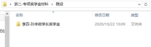 备注:校设和院设奖学金分开汇总(即两个文件夹,文件夹里每个学生的材料单独整理成一个文件夹,命名为:姓名-专项奖学金名称(如张三-庄氏奖学金)。